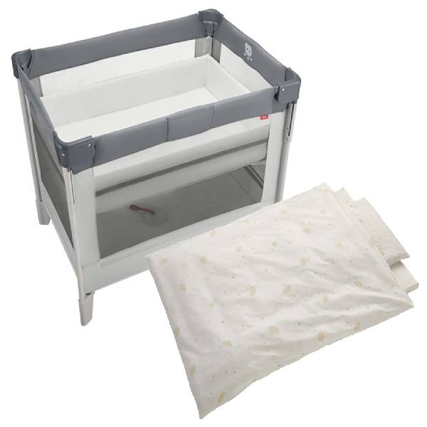 コンパクトにカンタンに折りたたんで、持ち運びできるベビーベッド。通気性の良いやわらかマットと安心メッシュ仕様のガードで赤ちゃんの快適な眠りをサポート。