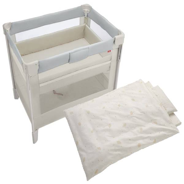 コンパクトにカンタンに折りたたんで、持ち運びできるベビーベッド。通気性の良いやわらかマットと安心メッシュ仕様のガードで赤ちゃんの快適な眠りをサポート。