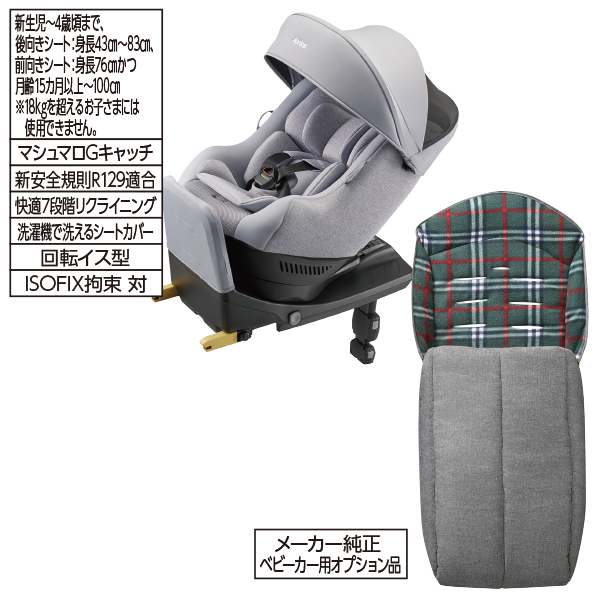 ●対象年齢:新生児~4歳頃まで(後向きシート:身長43cm~83cm・前向きシート:身長76cmかつ月齢15カ月以上~100cm)※ 18kgを超えるお子さまには使用できません。