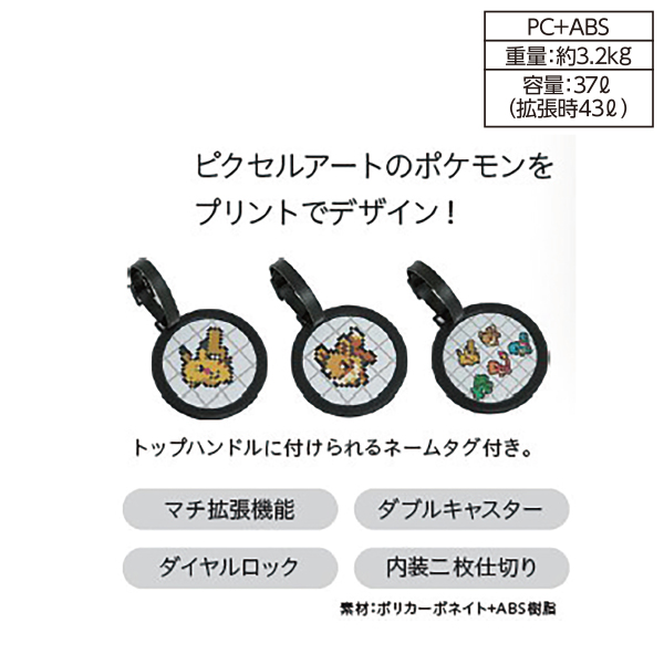 スカイル ポケモン ピクセルアート スーツケース Lサイズ イエロー【商品お渡し予定日:11月22日(土)以降】