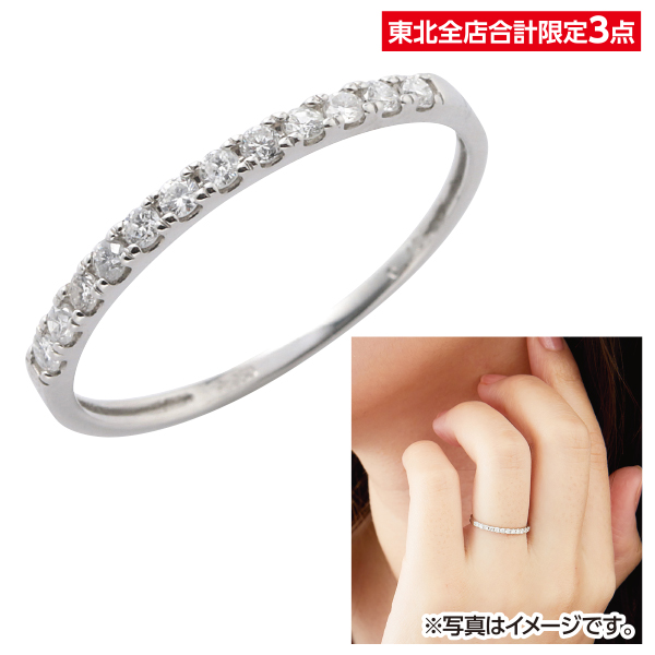 繊細な煌きが魅力的な人気のハーフエタニティリング。