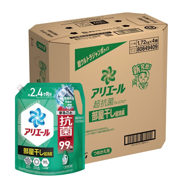 P&G アリエールジェル 部屋干しプラスつめかえ 超ウルトラジャンボサイズ (ケース)【商品お渡し予定日:11月28日(金)以降】