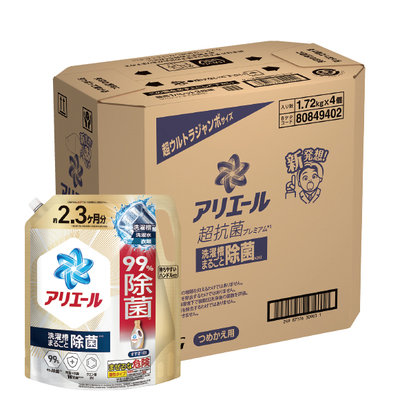 P&G アリエールジェル 除菌プラスつめかえ 超ウルトラジャンボサイズ (ケース)【商品お渡し予定日:11月28日(金)以降】