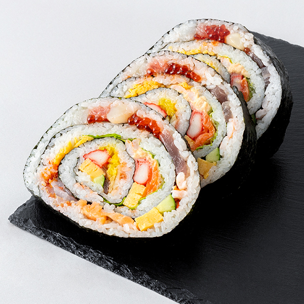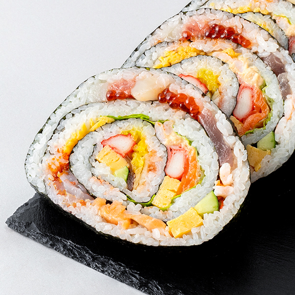 ●具材は圧巻の20種!まぐろ、いか、まぐろたたき、えび、いくら、煮穴子、サーモン、焼きサーモンハラス、貝小柱、蒸し海老、錦糸玉子、味付数の子、おぼろ、かんぴょう、たくあん、かに風味かまぼこ、シーチキン、きゅうり、玉子、レタス