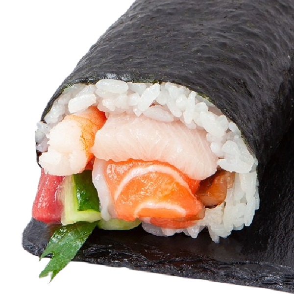 ●まぐろ・ぶり・生アトランティックサーモン・穴子・いか・数の子・えび・きゅうり・大葉