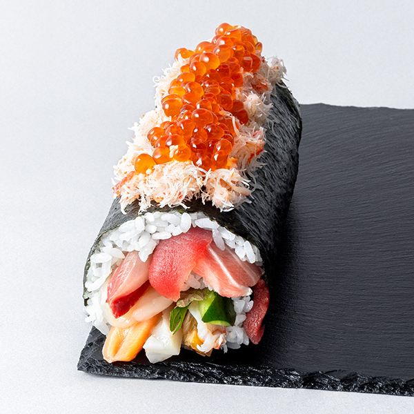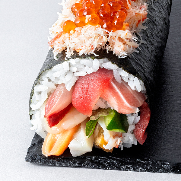 魚屋自慢の本まぐろ・いくら・かに等が入ったご馳走巻き鮨です。