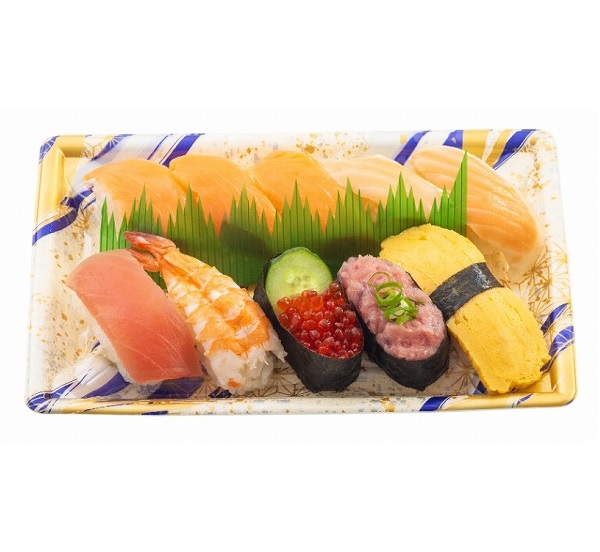 【商品内容】サーモン、焼きサーモンハラス、まぐろ、寿司えび、いくら軍艦、まぐろたたき軍艦、玉子