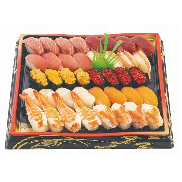 【商品内容】本まぐろ中とろ、本まぐろ赤身、まぐろ、ずわいがに、うに軍艦、いくら軍艦、ほたて、サーモン、寿司えび、赤えび