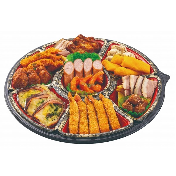 【商品内容】海老チリ、フランク、炙り焼きチキン、焼売、チーズ春巻、合鴨スライス、フライドポテト、肉団子、カニ風味かまぼこフライ、ベーコングラタン、軟骨入りつくね、海老フライ