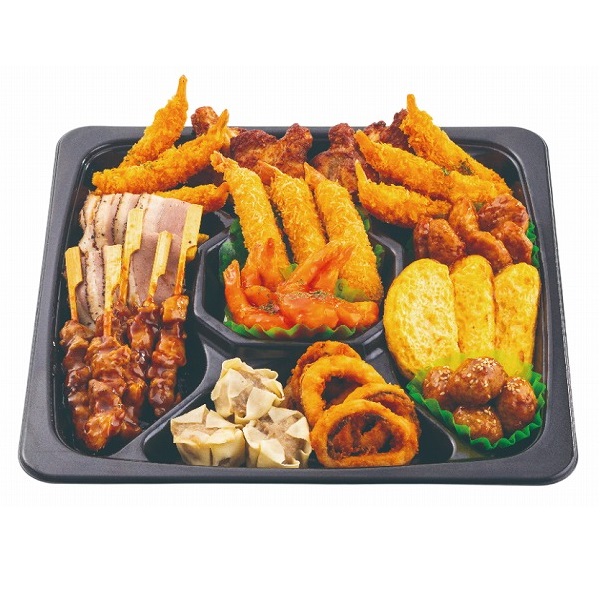 【商品内容】海老チリ、炙り焼きチキン、海老フライ、軟骨入りつくね、プレーンオムレツ、肉団子、いかの唐揚げ、焼売、焼鳥もも串、合鴨スライス、フライドポテト、カニ風味かまぼこフライ