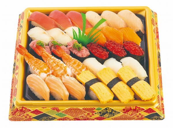 【商品内容】まぐろ、びんちょうまぐろ、塩〆赤魚、サーモン、まぐろたたき軍艦、いくら軍艦、寿司えび、いか、焼きサーモンハラス、玉子
