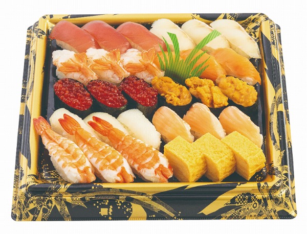 【商品内容】まぐろ・塩〆赤魚・赤えび・サーモン・いくら軍艦・うに軍艦・いか・焼きサーモンハラス・寿司えび・玉子焼き