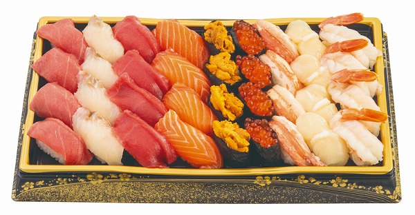【商品内容】本まぐろ中とろ・ひらめ・本まぐろ赤身・サーモン・うに・いくら・かに・ほたて・えび