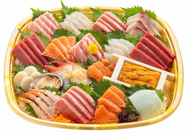 【商品内容】本まぐろ大とろ・鯛・本まぐろ中とろ・ぶり・本まぐろ赤身・サーモン・平目・ほたて・あわび・ホッキ貝・ツブ貝・ミル貝・うに・えび・いか