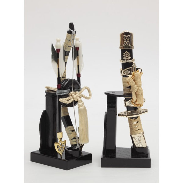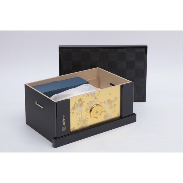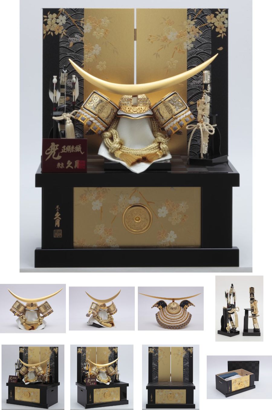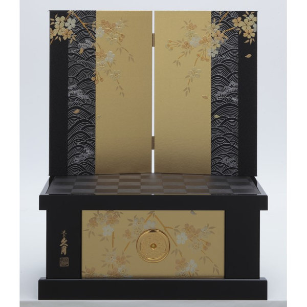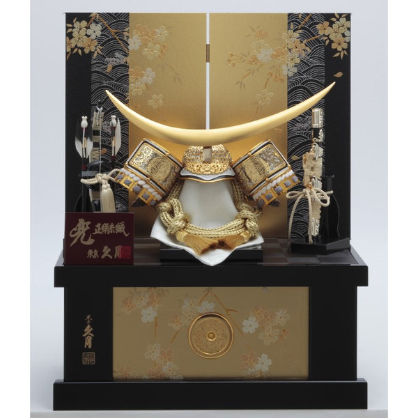 幕板と屏風に桜柄の金彩加工を施しています。伊達政宗公をイメージした兜を合わせました。