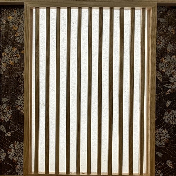 背景から光を透かす岐阜県産の手すき和紙格子細工が兜を引き立てています