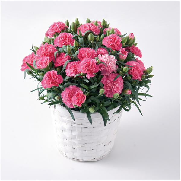 焦がしキャラメルがしみ込んだバーム4、カーネーションホットハート5号鉢(サイズ:高さ約35cm×幅約20cm)、お手入れのしおり付き