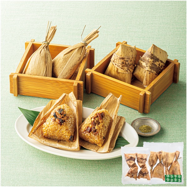 コクのあるたれで味付けしたもち米に国産うなぎをトッピングしたおこわと、黒豚角煮をのせたちまきを詰合せ。
