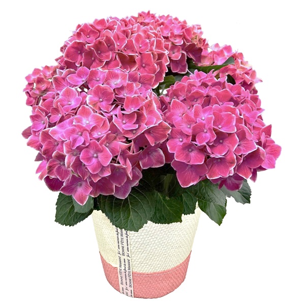 濃いピンクの花弁を縁どる白が印象的なあじさい。花弁の持ちが長く、咲き進むにつれて色変化も楽しめます。