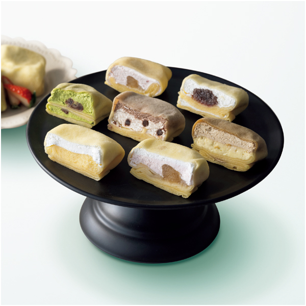 和菓子屋ならではの、大福のようなもちっとしたクレープ生地で、甘さ控えめのクリームを包んだ6種セット。