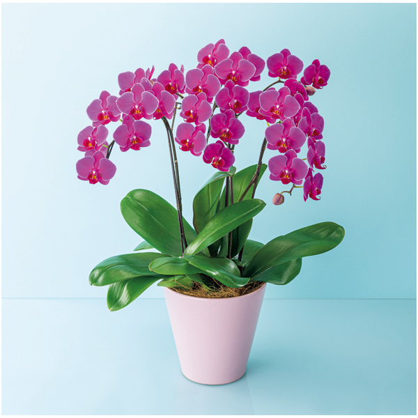 ミディ胡蝶蘭の中でもやや大きめで鮮やかな色の花を咲かせます。存在感のある贈り物です。