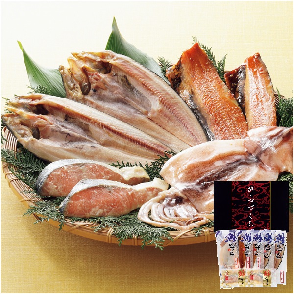 真ほっけ開き150g×2、秋鮭西京漬け70g×2、にしん味醂干し60g×2、開きいか70g