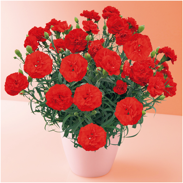 落ち着いた真紅の花びらが印象的なカーネーション「カンタービレ」。お母さんへ、日頃の感謝の気持ちを伝えてくれます。