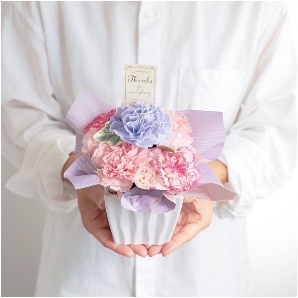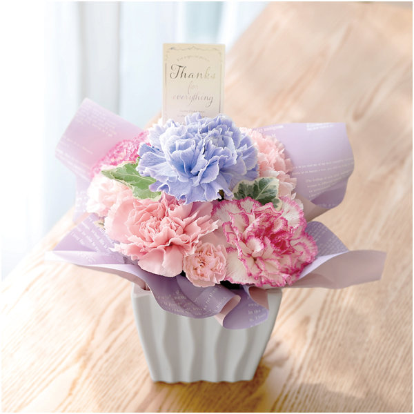 やさしい色の重なりが魅力のアレンジメント。母の日に穏やかな時間を届けてくれます。