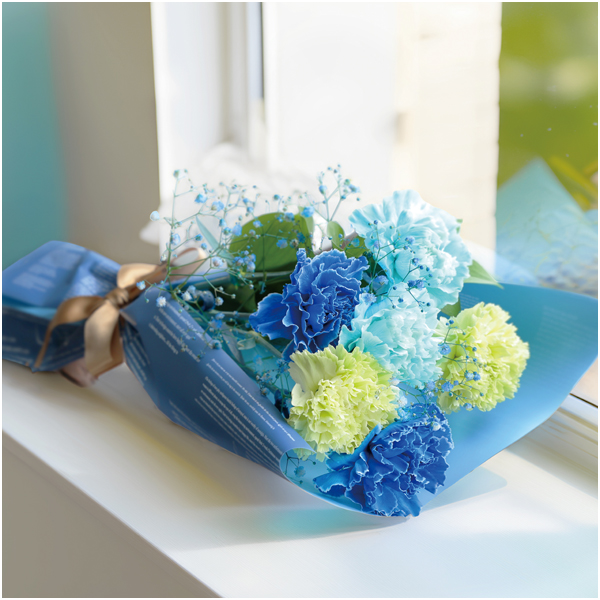 心奪われる色合いのブーケ。特別感のあるブルーのお花で心に残る贈り物にしませんか。