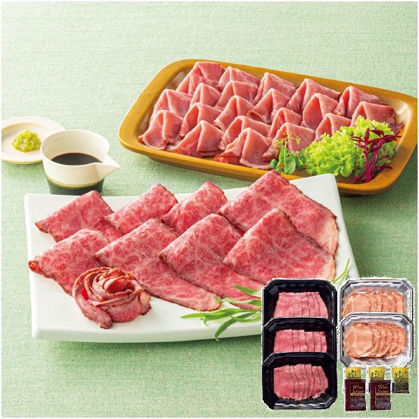 国産黒毛和牛ローストビーフ・ローストポークスライスセット AE010
