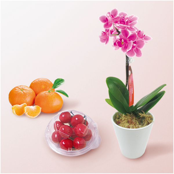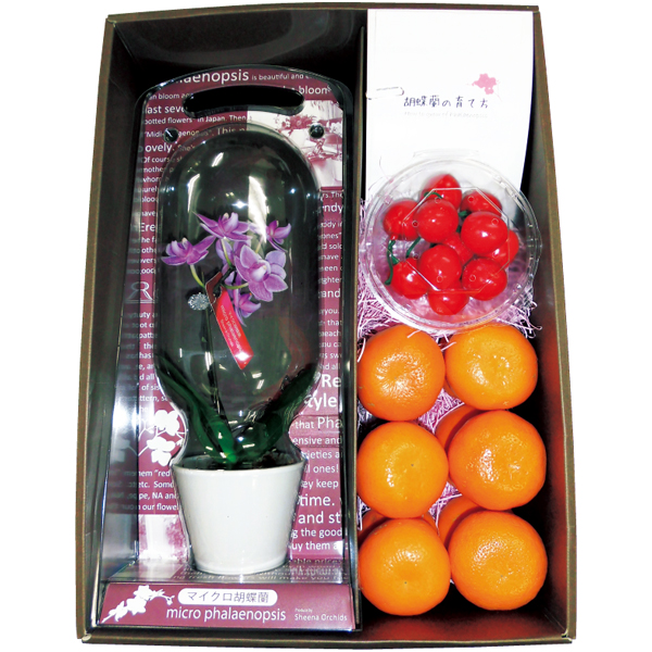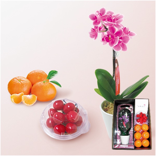 マイクロ胡蝶蘭と愛媛県産カラマンダリンと山形県産さくらんぼセット