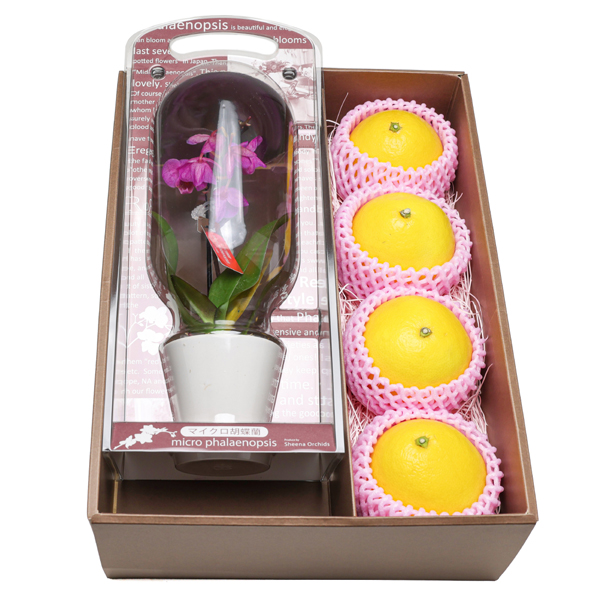 マイクロ胡蝶蘭2.5号(ピンク系)1本立ち1鉢(高さ約22cm×鉢直径約8.6cm)、小夏2Lサイズ4個 (1個200g以上)