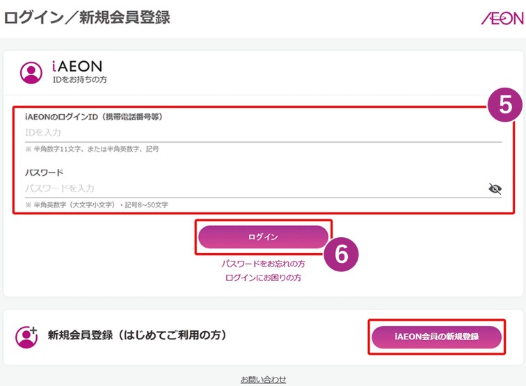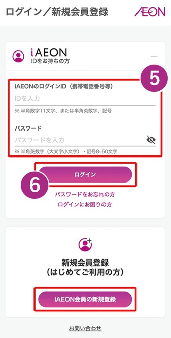 5ご登録済のiAEONのログインID、パスワードを入力します。
