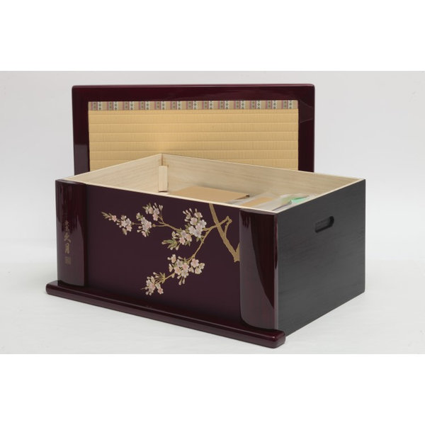 ●飾り台:紫を基調とした台に金彩の枝桜を配しました