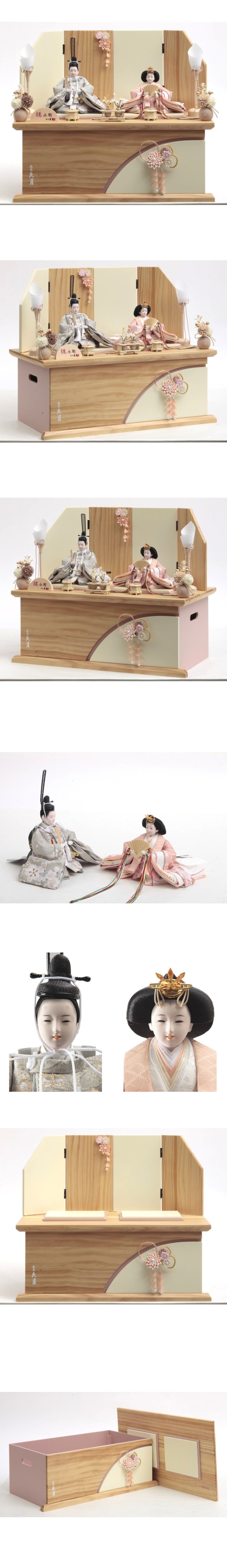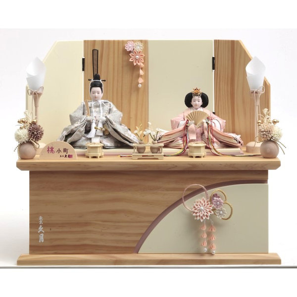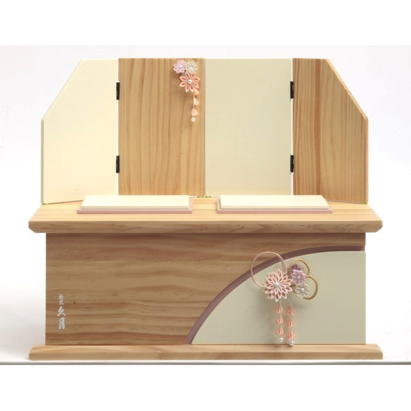 木目を活かした屏風と収納箱につまみ細工をあしらったお飾りです