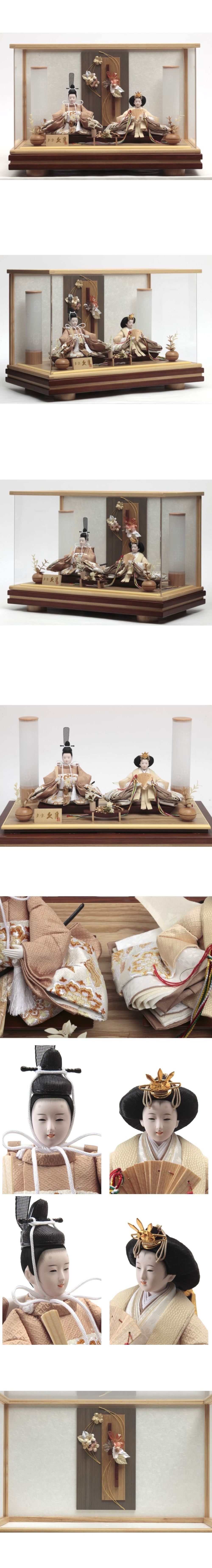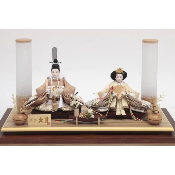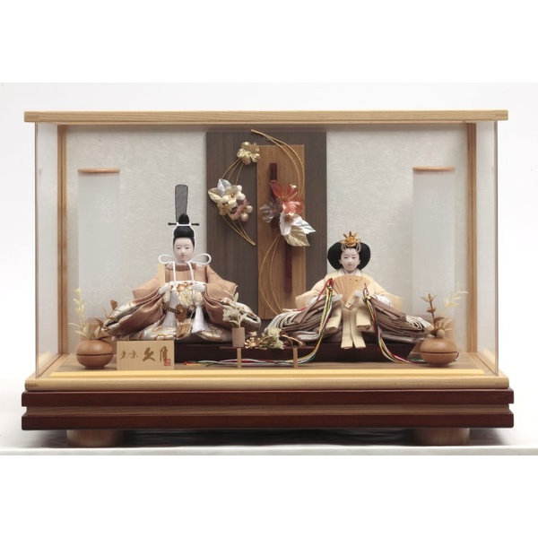 ケースやお衣裳に2種類の濃淡の異なるブラウンカラーを配色したお飾りです。