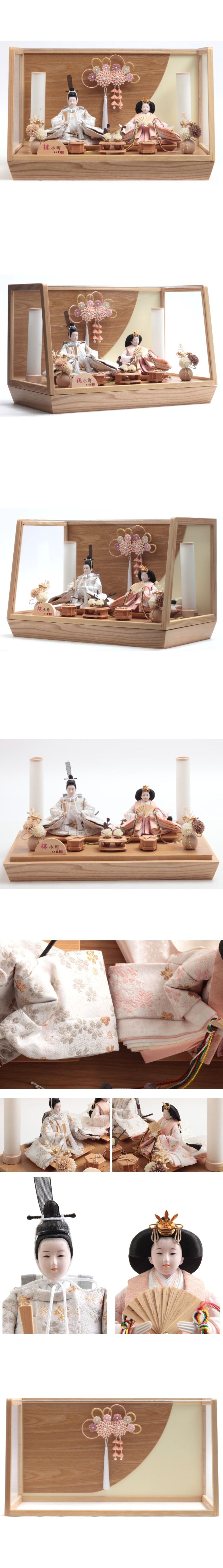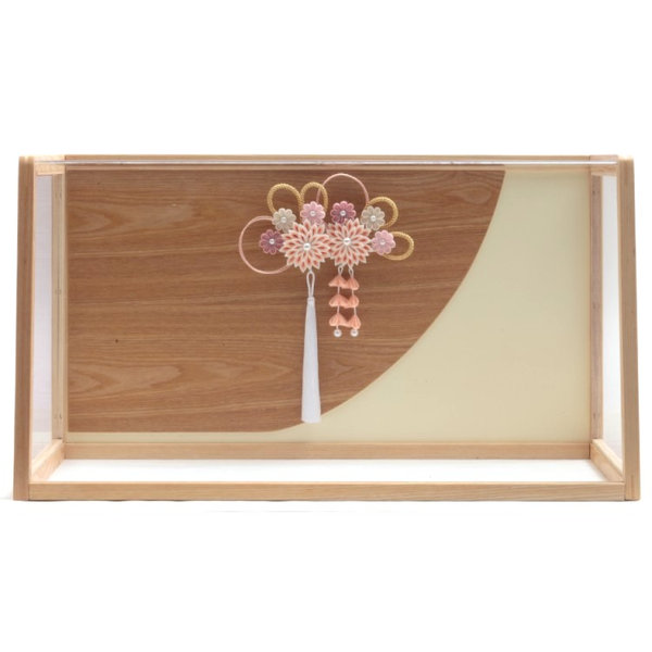 つまみ細工の装飾やお人形が際立つ、ケースの上部の枠を無くしたデザインのお飾りです。