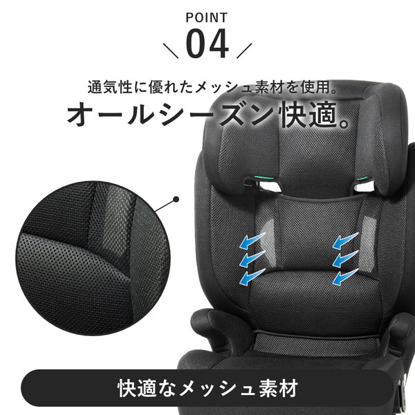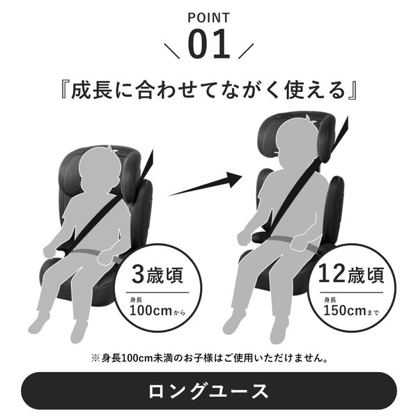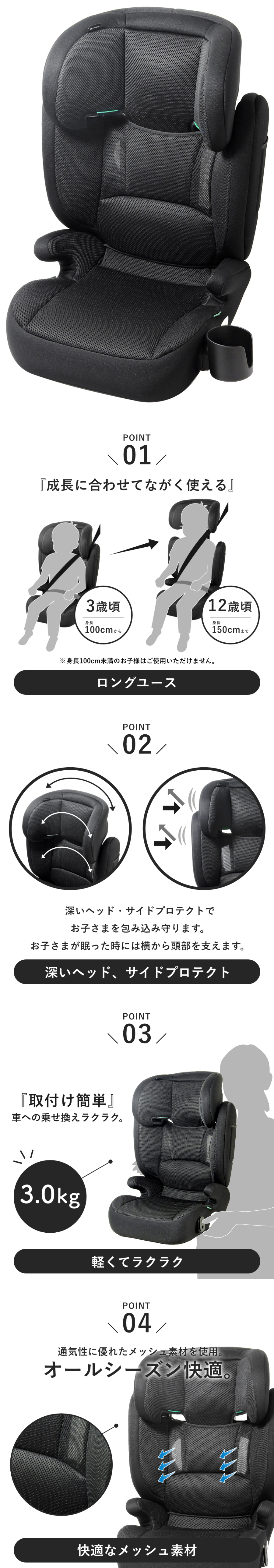 3歳頃~12歳頃まで成長に合わせて長く使える安心・快適なジュニアシートです。