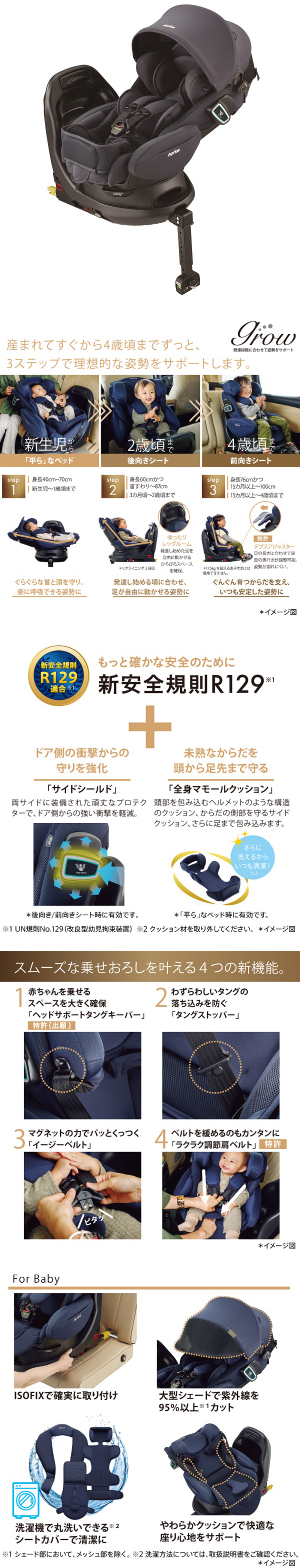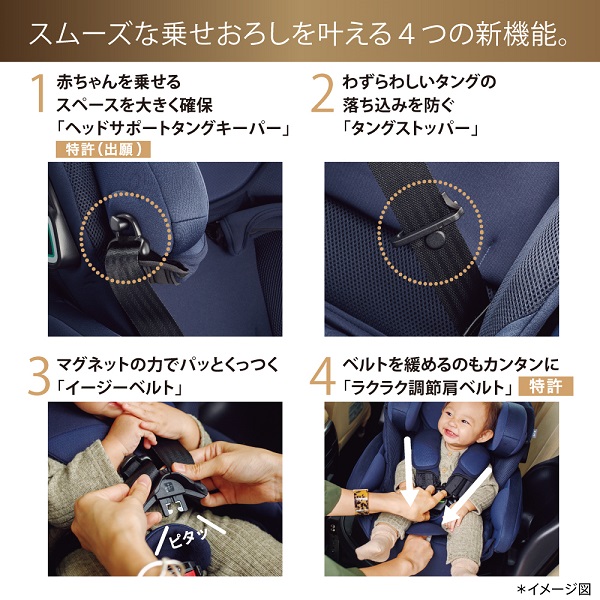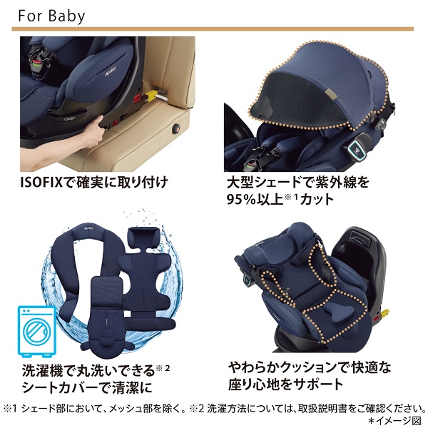 サイドシールドと全身マモールクッションを装備して、赤ちゃんを前後左右から優しく守る高い安全性を実現しています。