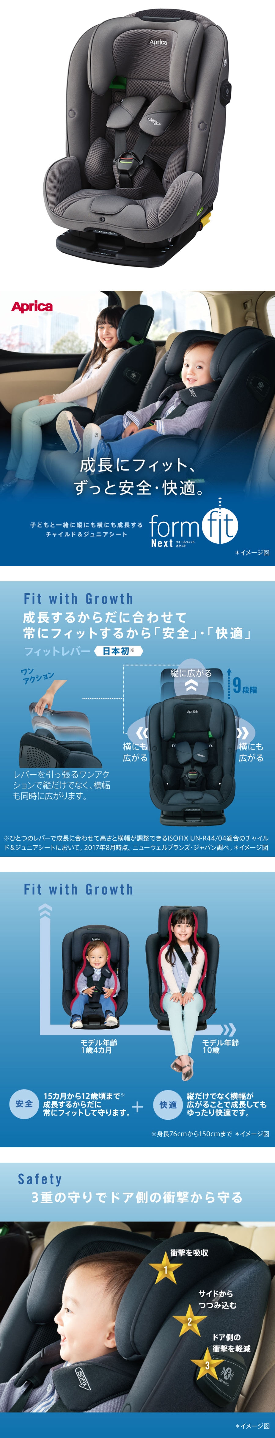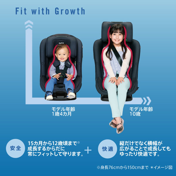 チャイルドシートモード:身長76cmかつ月齢15ヵ月以上~105cm※チャイルドシートモードでは体重19.5kgを超えるお子さまには使用できません。