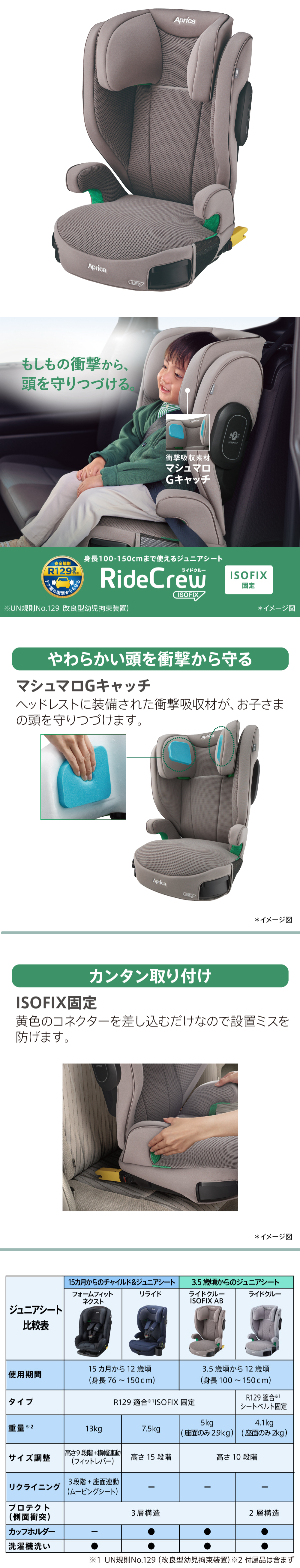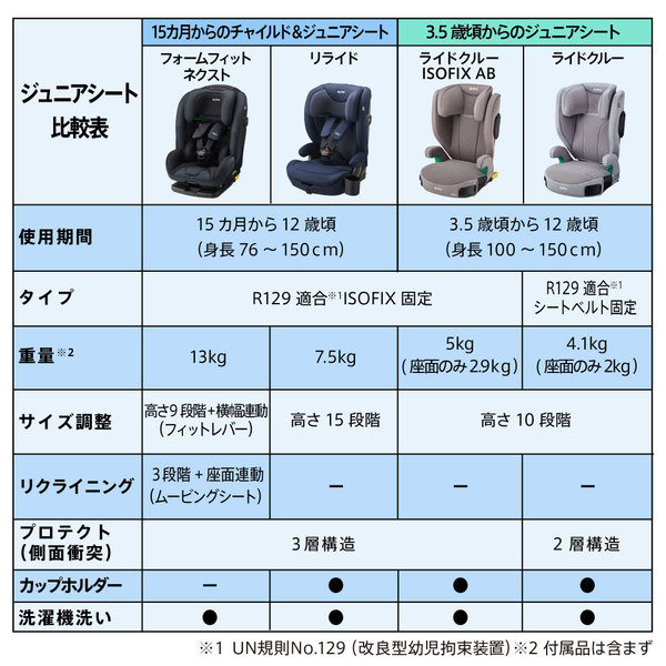新安全規則R129適合の3歳頃から使えるジュニアシート。