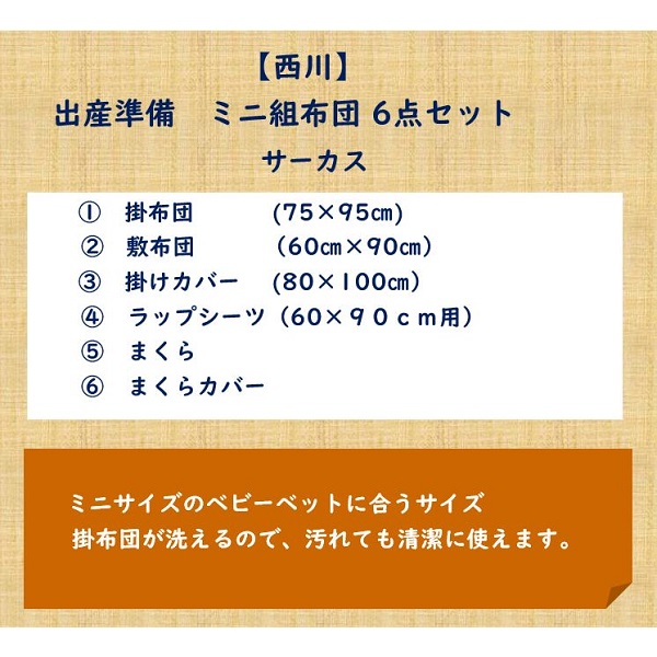 西川 出産準備ミニ組布団6点セット サーカス GR