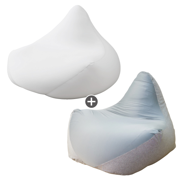 リラクシングビーズソファM+ソファカバー 2点セット ホワイト&グレー 【お渡し予定日: 2025/12/29以降】