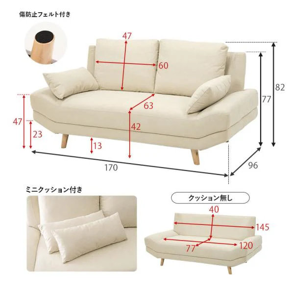 ◆サイズ:(約)幅170×奥行96×高さ71/82×座面高31/42cm