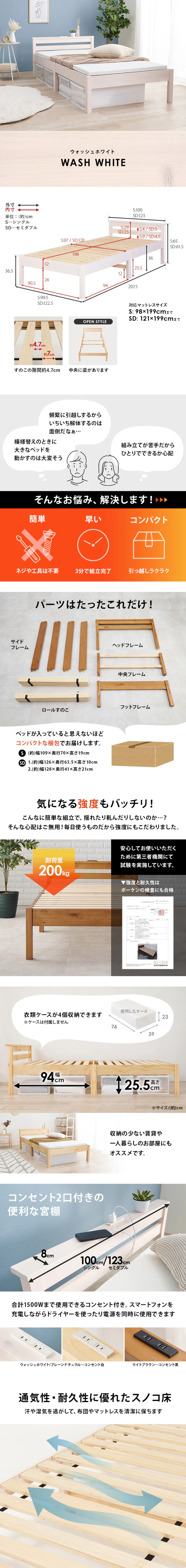 ◆サイズ:セミダブル(約)幅123×奥行207.5×高さ61.5×床面高36cm