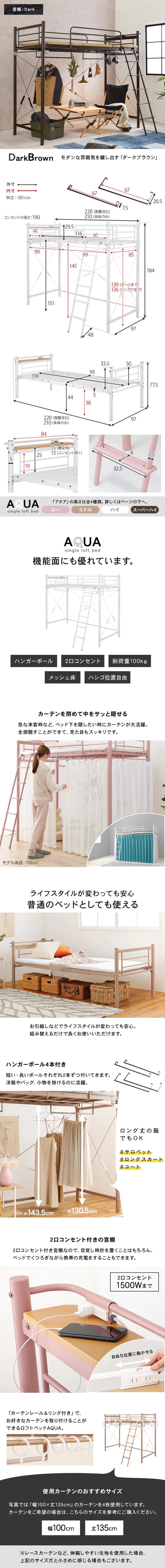 ◆サイズ:(約)幅97×奥行220×高さ184/77.5×床面高151/44cm