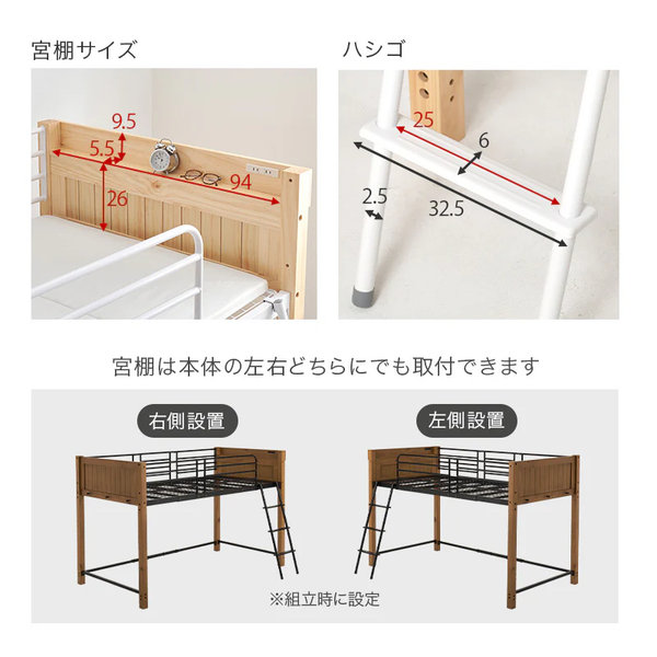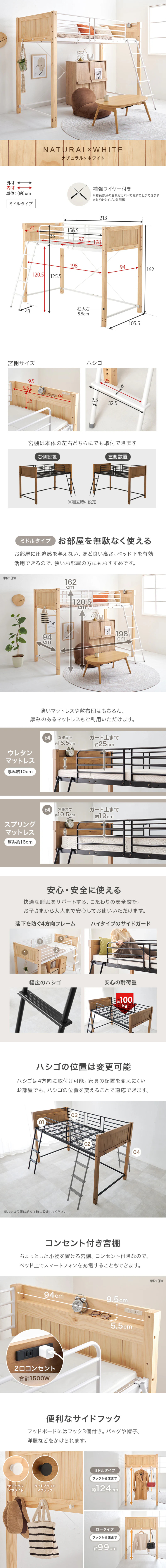 ロフトベッド(ミドルタイプ/ナチュラル×ホワイト)