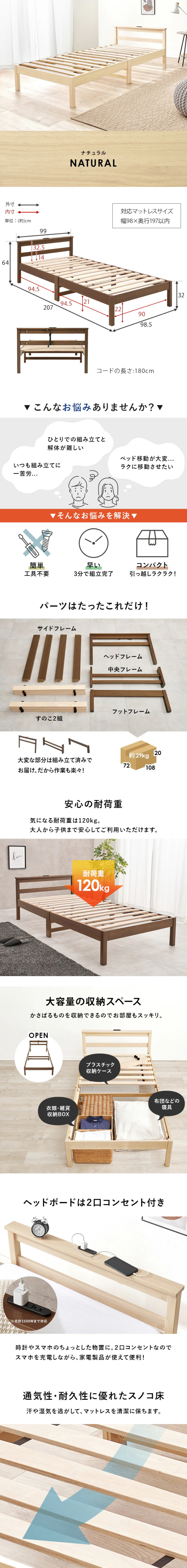 ◆サイズ:シングル(約)幅99×奥行207×高さ64×床面高32cm