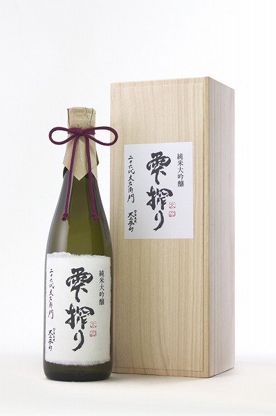 「雫搾り」とは、酒自体の自重で垂れてくる雫だけを集めた、大変手間のかかる搾り方です。圧力が少ない分雑味の無い澄んだ味わいに仕上がり、香りと旨味が見事に調和した当蔵最高級品です。