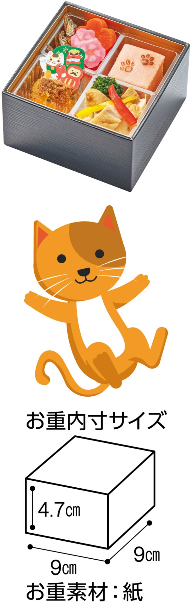 ■お重一段内寸サイズ:90㎜×90㎜×47㎜